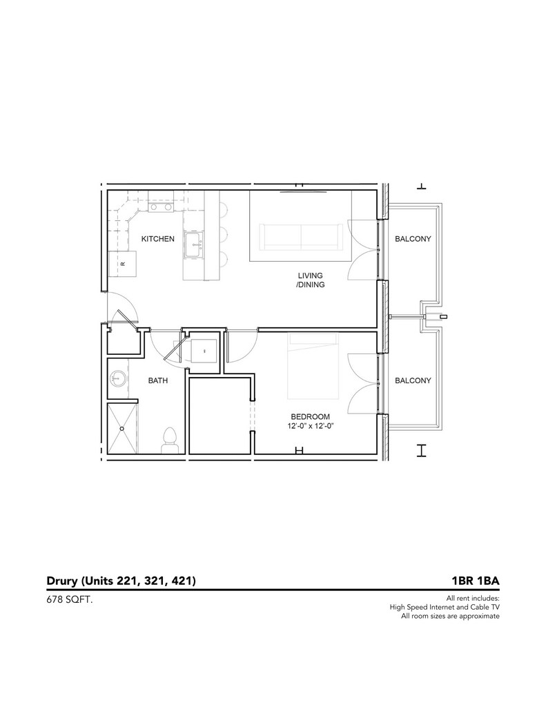 Apartment Model: Drury$1,7651 Bedroom, 1 Bath, 678 sq ftAvailable Now![]()