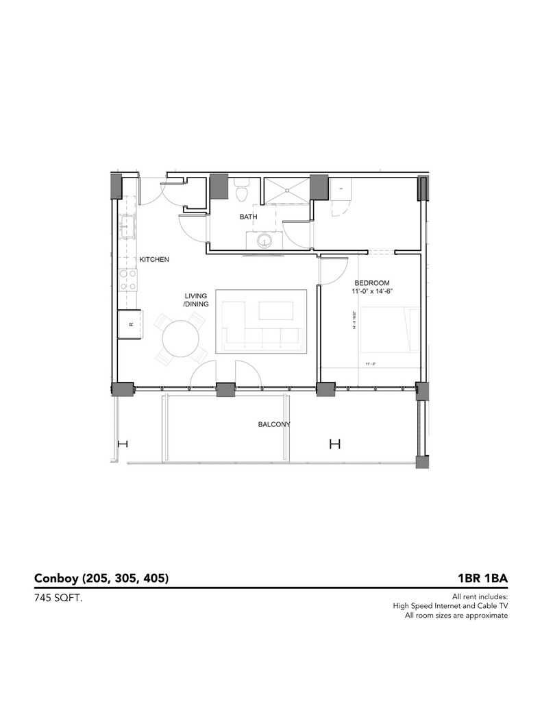 Apartment Model: Conboy$1,8521 Bedroom, 1 Bath, 745 sq ftAvailable Now![]()