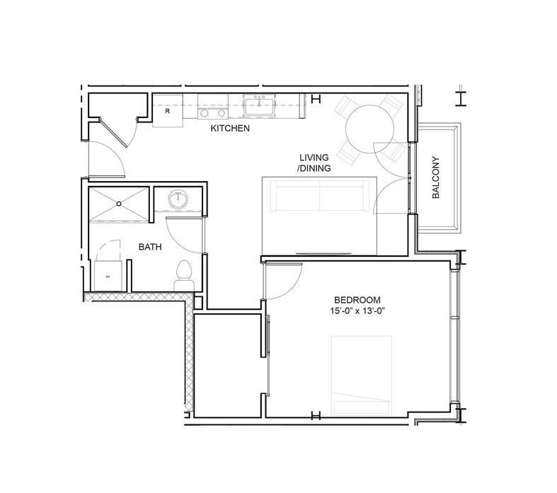 1 Bed, 1 Bath, 728 sq ftAvailable NowModel Gallery