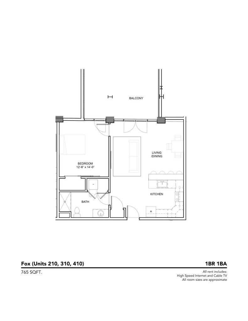 Apartment Model: Fox$1,8631 Bedroom, 1 Bath, 765 sq ftAvailable Now![]()