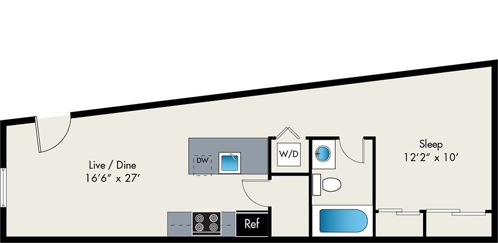 Studio, 1 Bath, 572 sq ftLargest StudioThis is the largest Studio at this PropertyModel Gallery