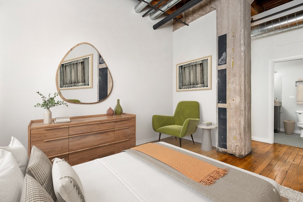 The Lofts at Gin Alley: Where the industrial grit of the past intersects with today's stylish living. Our unique, loft-style apartment homes feature high ceilings, hardwood floors, exposed bricks and beams, ample closet space and in-unit washers and dryers. The Lofts at Gin Alley comprise of three, loft buildings nestled on Green Street and Peoria Street and offers studio, one, two and three-bedroom loft-style apartments in the heart of the Fulton Market District. Community amenities include a Sky Deck with grills and 360-degree views of downtown, 24/7 concierge services, 24-hour emergency maintenance and a brand new, state-of-the-art fitness center. In-person and virtual tours are available!
