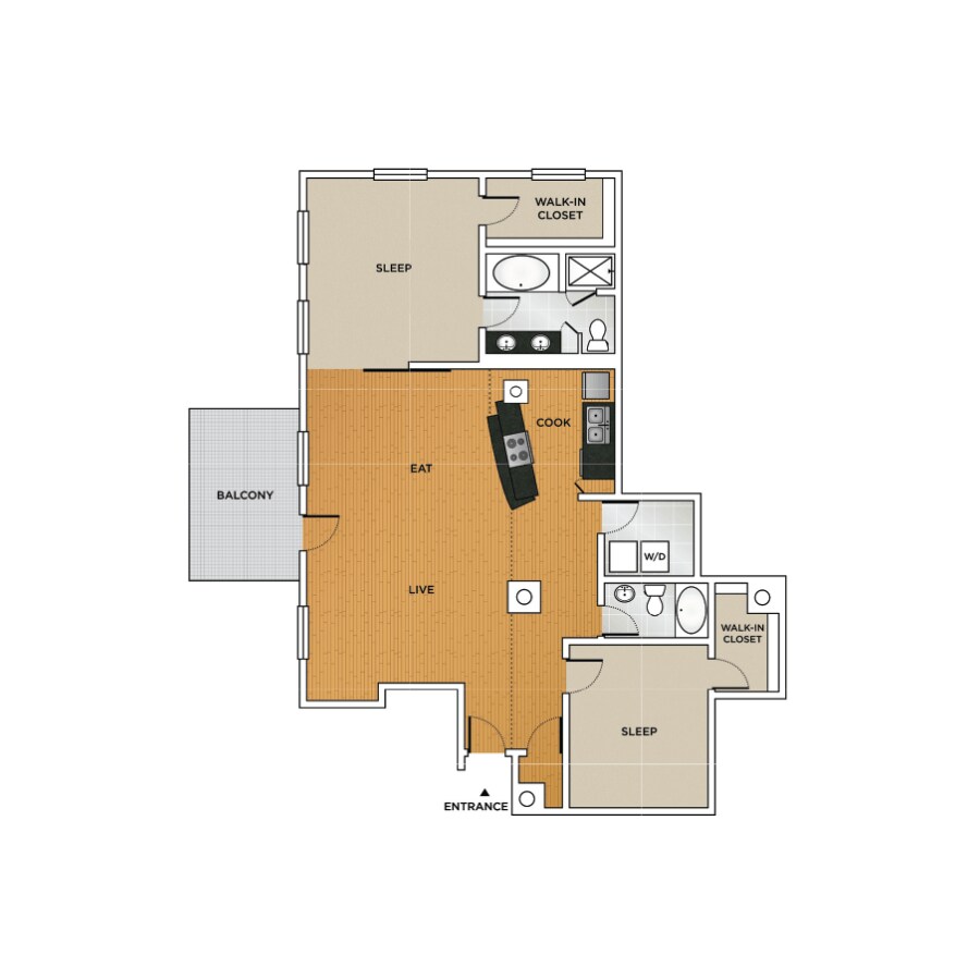 Apartment Model: B2From $1,5452 Bedroom, 2 Bath, 1343 sq ftAvailable Now![]()