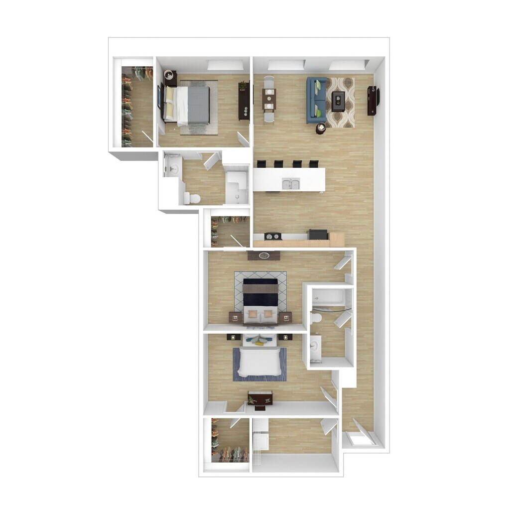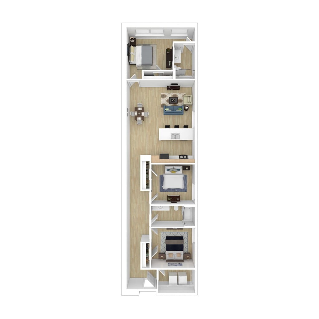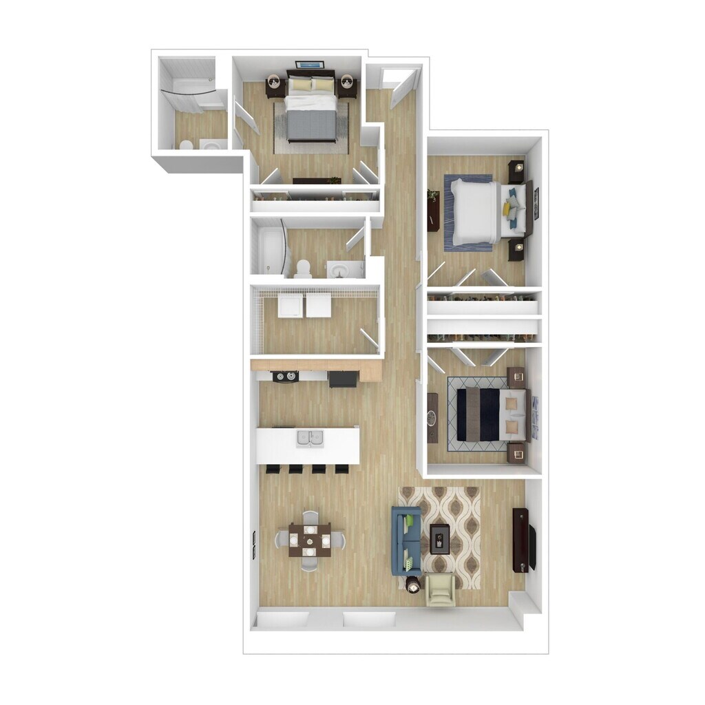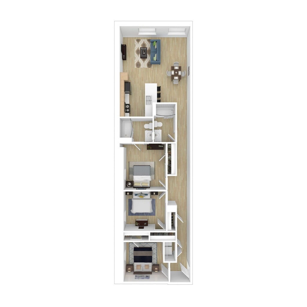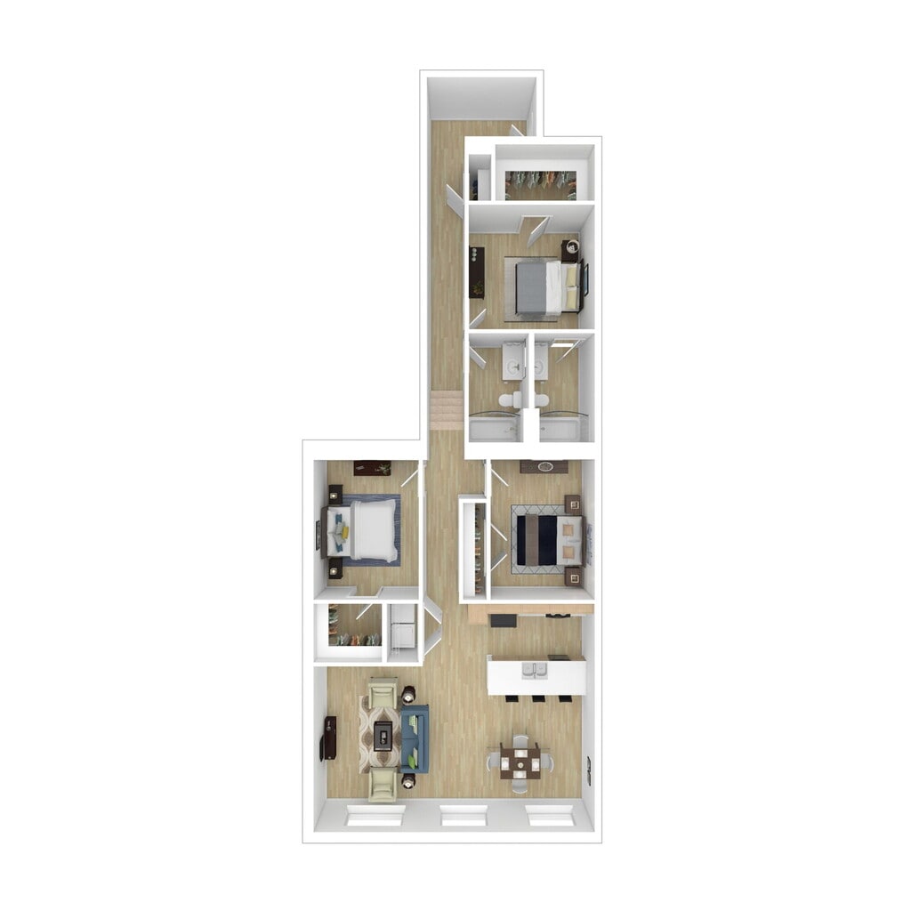 Two Bed Loft / Two Bath - Floorplan 1 Apartment Unit: 226Apartment Model: Two Bed Loft / Two Bath$1,3522 Bedroom, 2 Bath, 1100 sq ftAvailable Now3 Bedrooms