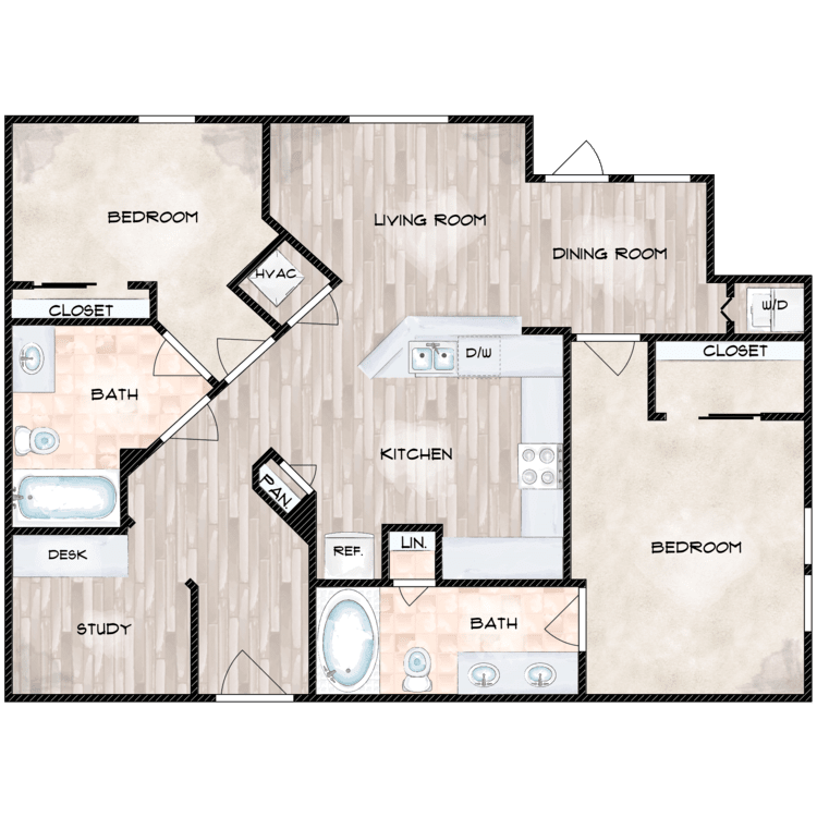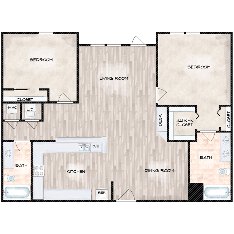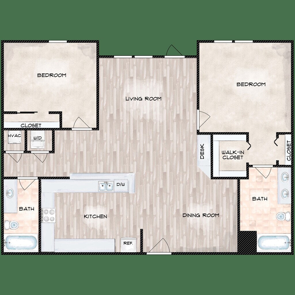 2 Beds, 2 Baths, 943 sq ftAvailable NowModel Gallery