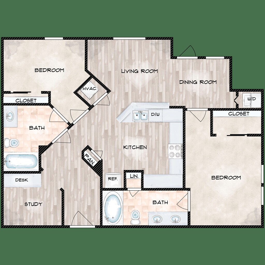1 Bed, 1 Bath, 674 sq ftAvailable NowModel Gallery