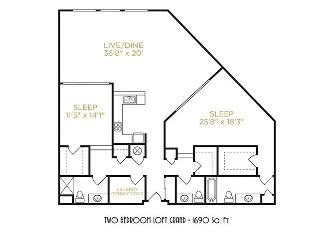 Two Bedroom Loft Grand - Floorplan 1 ![]()