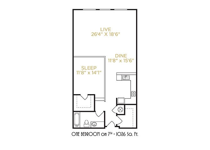 One Bedroom Vista - Floorplan 2 One Bedroom on 7th