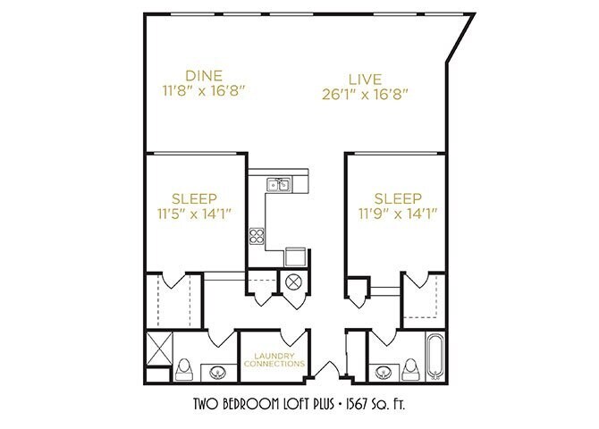 Two Bedroom Loft Plus - Floorplan 1 ![]()