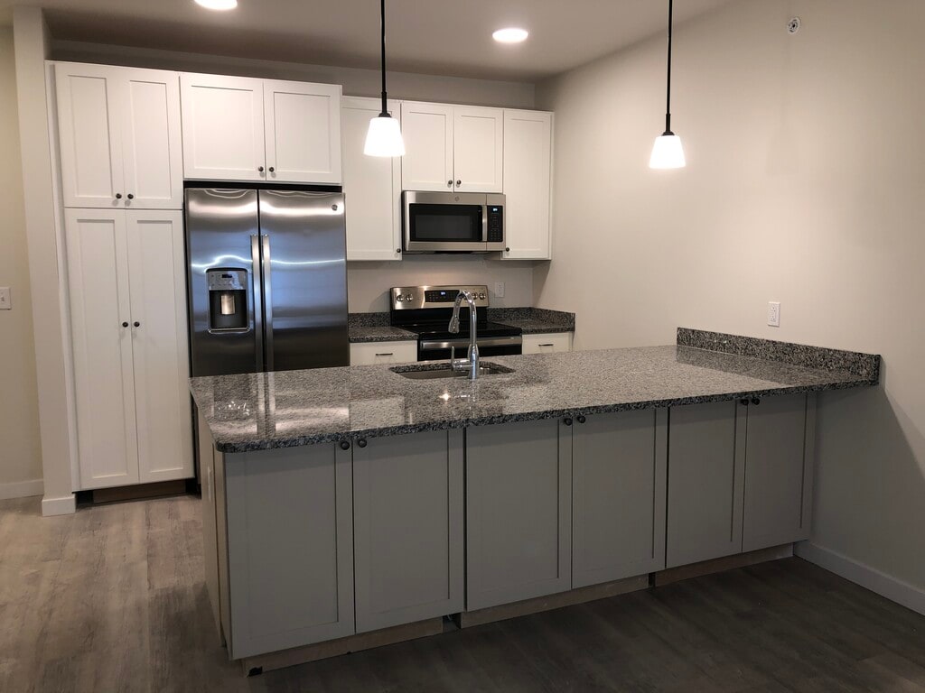We have 30 beautiful, three-year-old, luxury apartments with a variety of boutiques, eateries, and practical services steps from your front door!