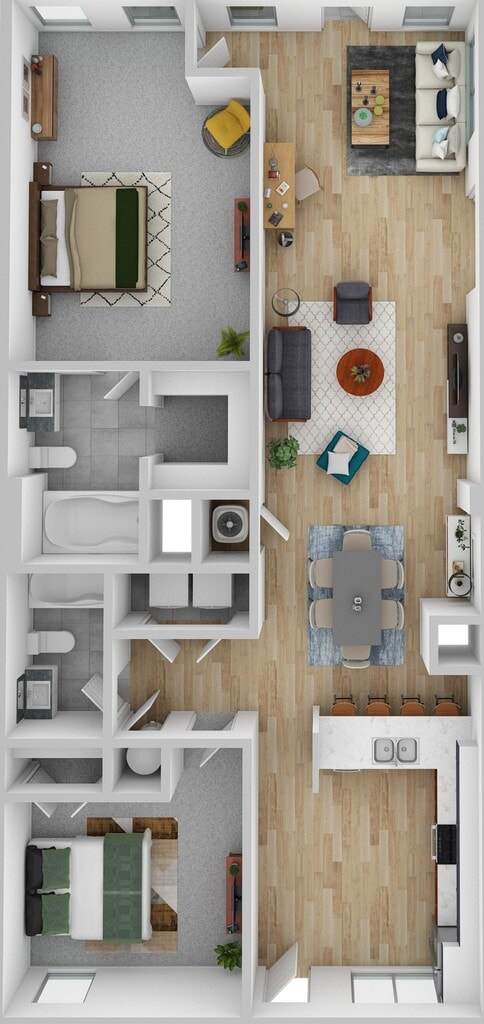 Situated adjacent to Snowden Grove Park, The Lofts offer spacious apartment homes in a convenient location surrounded by a park-like setting. Charming shops are just steps away in Town Square. These fashionable two-bedroom, two-bath lofts feature stained concrete floors, balconies, and more.
