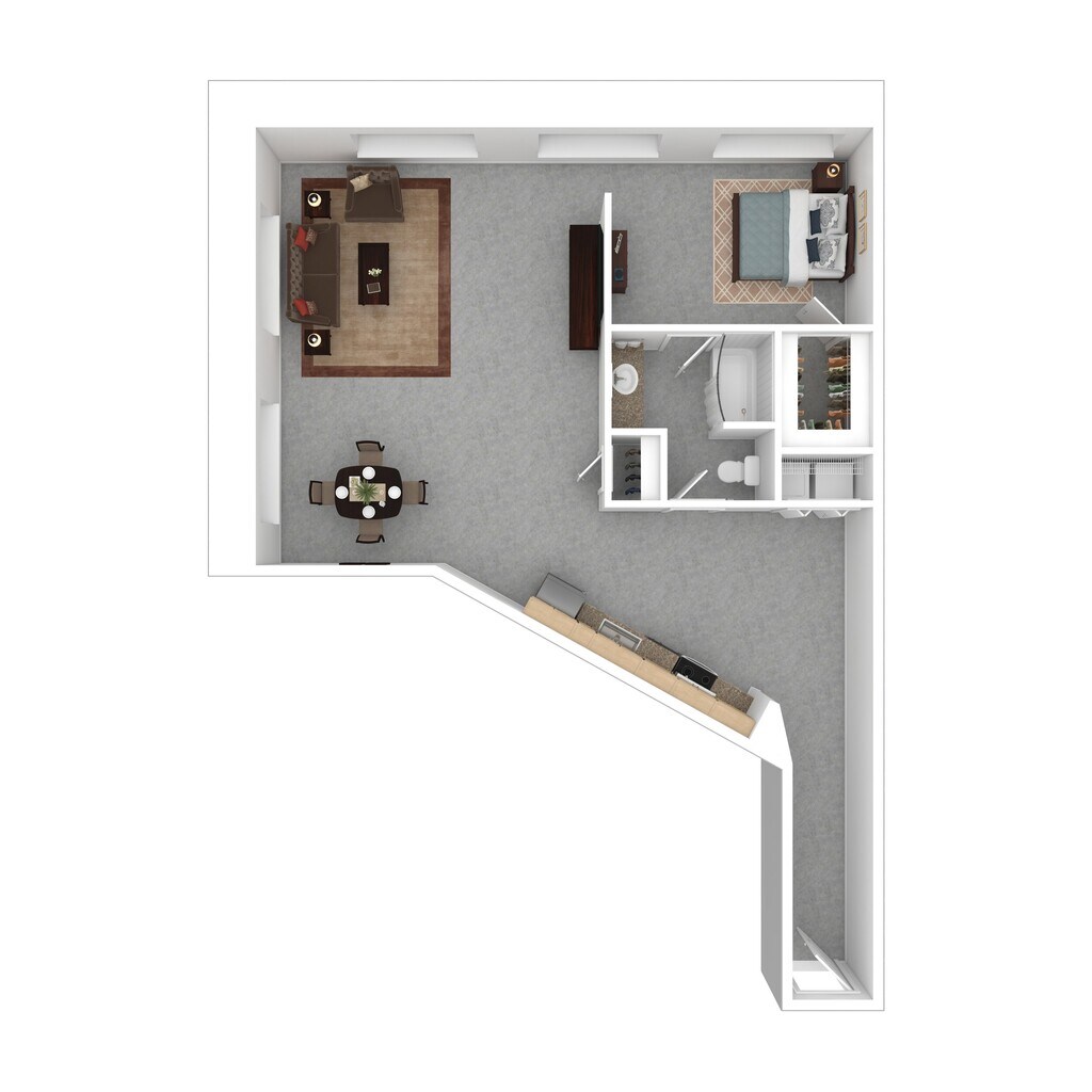 1 Bed, 1 Bath, 888 sq ftModel Gallery