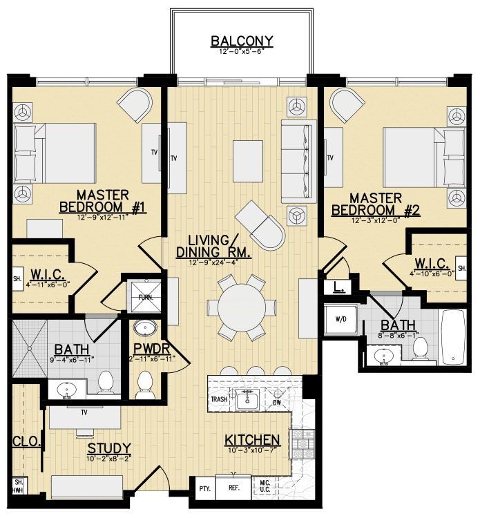 2 Beds, 2.5 Baths, 1262 sq ftModel Gallery