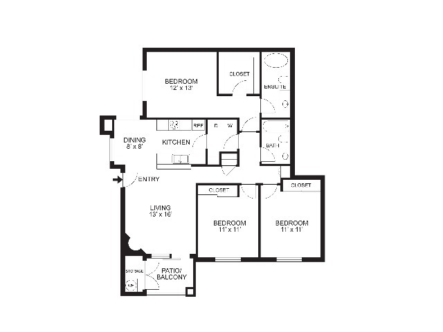 Apartment Model: Royale3 Bedroom, 2 Bath, 1206 sq ftAvailable Now![]()