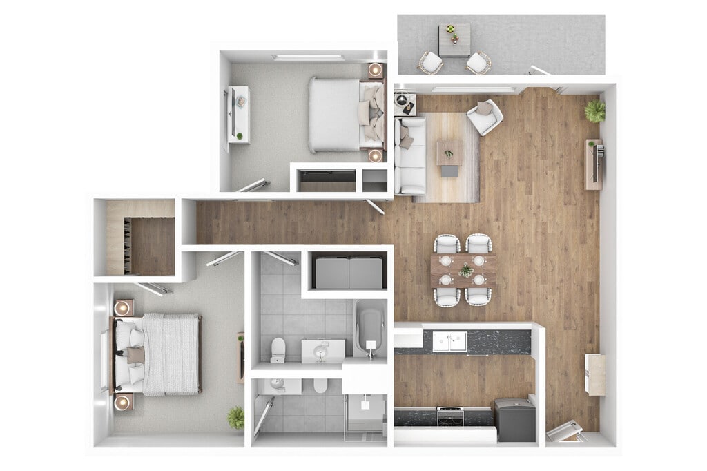 2 Beds, 2 Baths, 785-906 sq ftAvailable NowModel Gallery