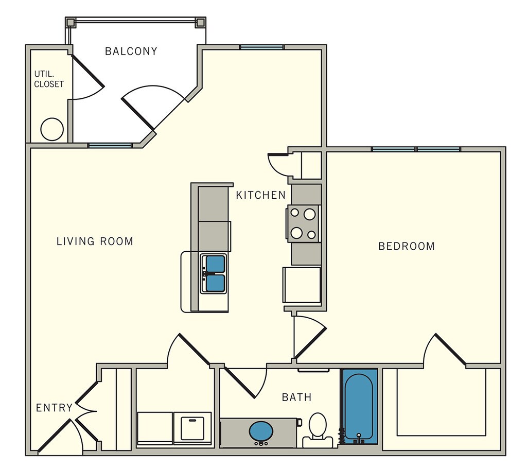 1 Bed, 1 Bath, 734 sq ftAvailable NowLargest 1 BedroomThis is the largest 1 Bedroom at this PropertyModel Gallery