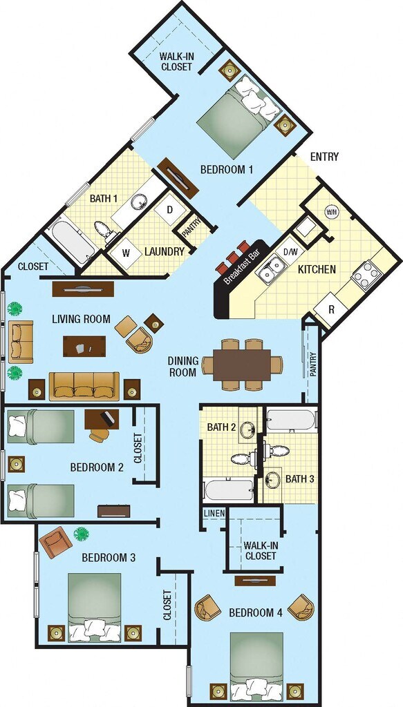 Apartment Model: OrchidFrom $1,7744 Bedroom, 3 Bath, 1506 sq ftAvailable Now![]() - Orchid - Floorplan 1