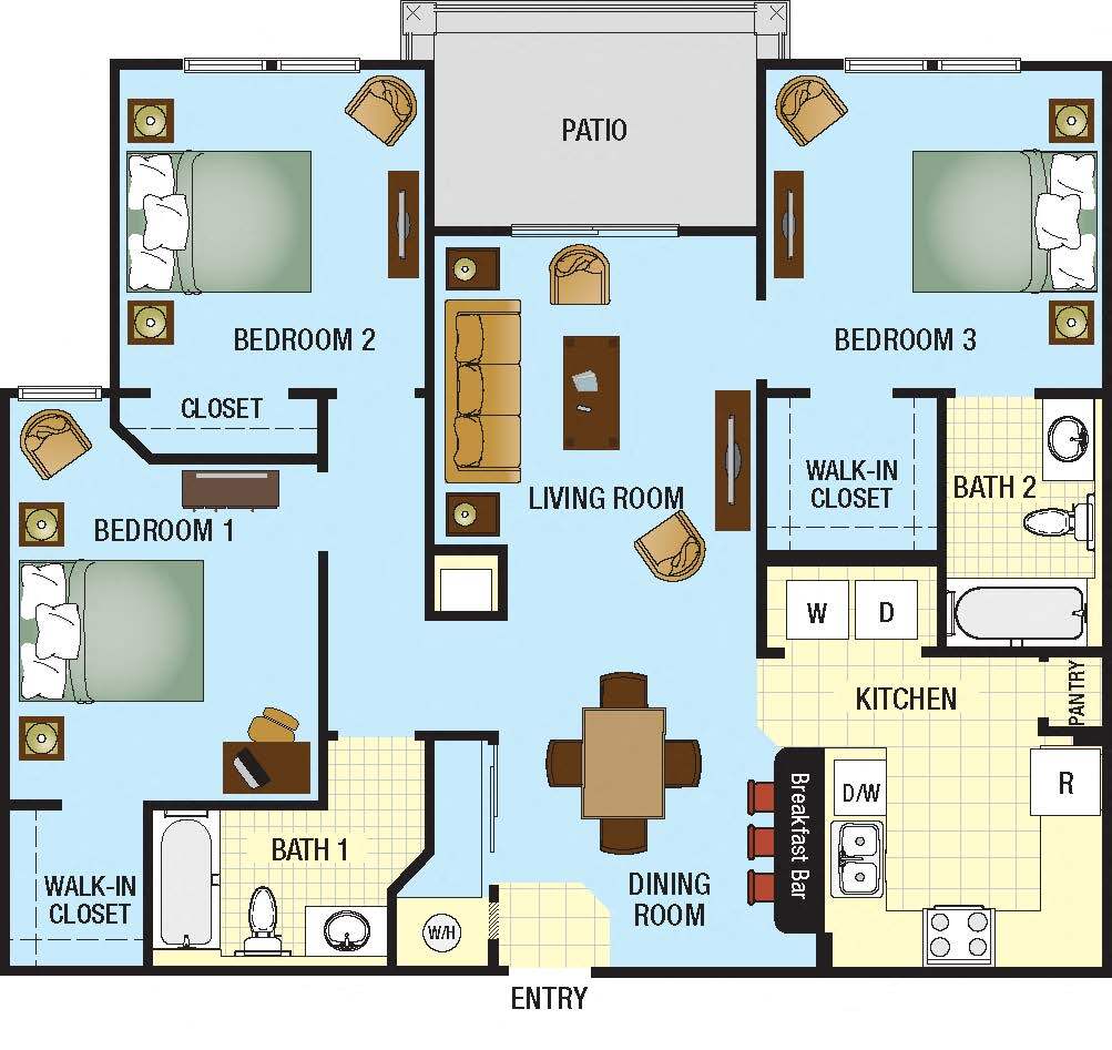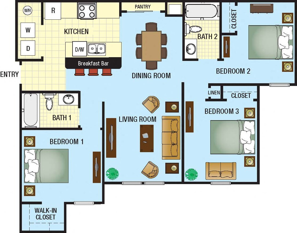 Apartment Model: Fox TailFrom $1,6063 Bedroom, 2 Bath, 1093 sq ftAvailable Now![]() - Fox Tail - Floorplan 1