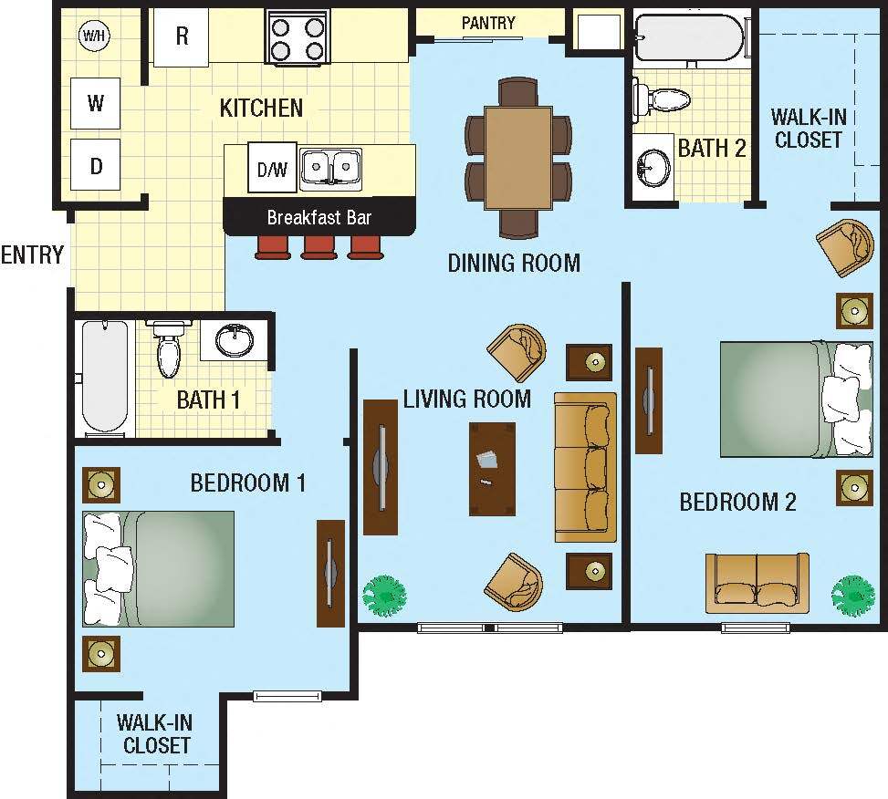Apartment Model: Magnolia$1,4292 Bedroom, 2 Bath, 984 sq ftAvailable Now![]() - Magnolia - Floorplan 1