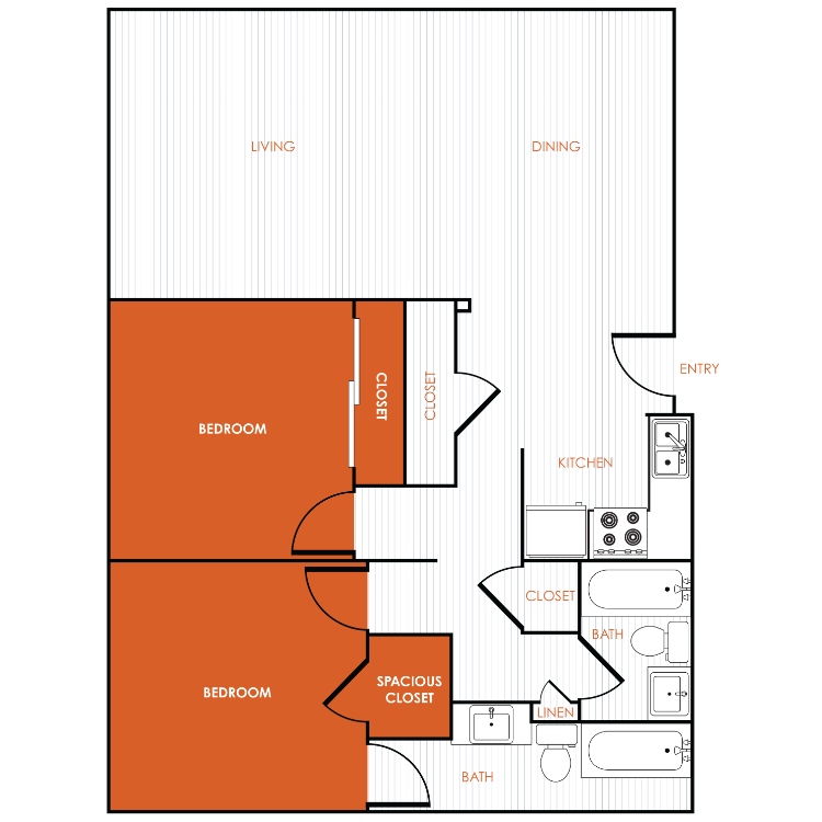 Apartment Model: 2x1From $1,1952 Bedroom, 1 Bath, 880-1000 sq ftAvailable Now![]()