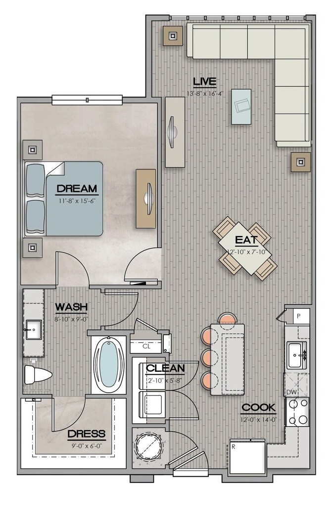 Apartment Model: WaterfrontFrom $1,3681 Bedroom, 1 Bath, 913 sq ftAvailable Now![]()
