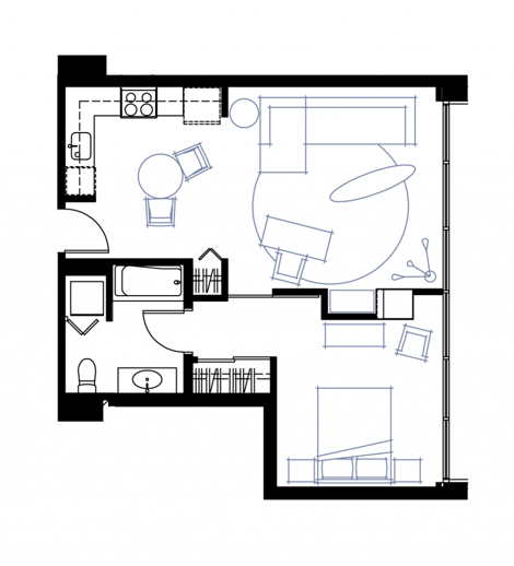 1 Bed, 1 Bath, 699 sq ftModel Gallery