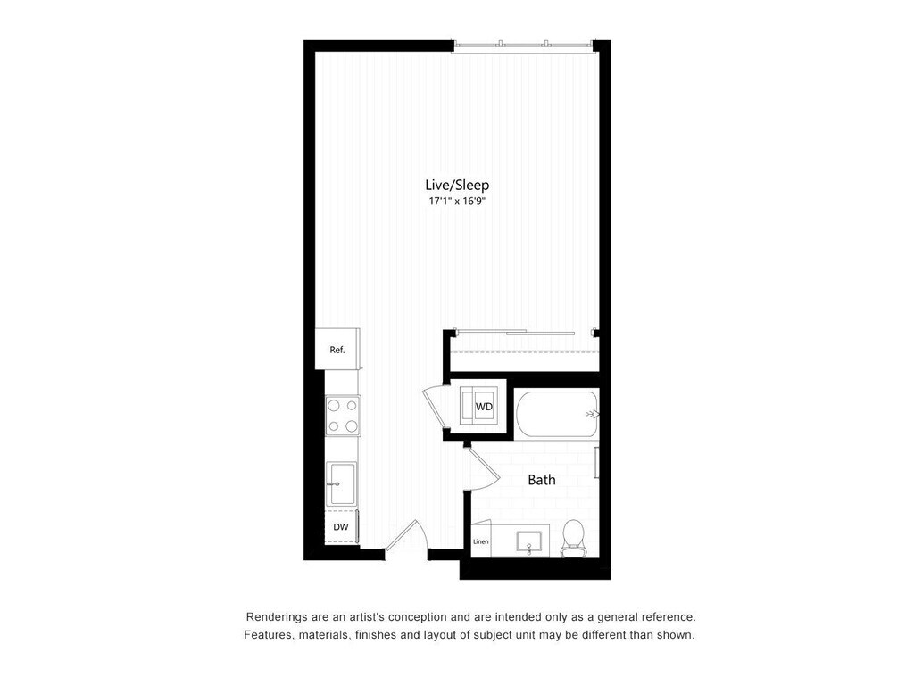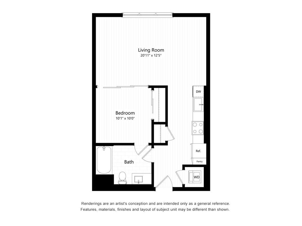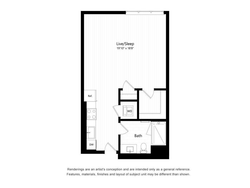 Apartment Model: S5Studio, 1 Bath, 632 sq ftUnavailableFloor plans are artist's rendering. All dimensions are approximate. Actual product and specifications may vary in dimension or detail. Not all features are available in every rental home. Prices and availability are subject to change. Base rent is based on monthly frequency. Additional fees may apply, such as but not limited to package delivery, trash, water, amenities, etc. Deposits vary. Please see a representative for details.