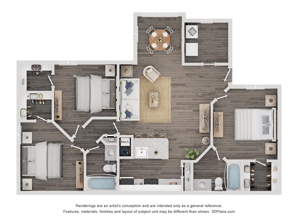 3 Beds, 2 Baths, 1070 sq ftAvailable NowModel Gallery