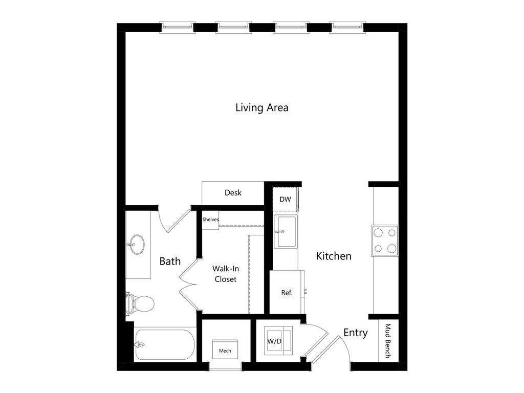 Studio, 1 Bath, 608-659 sq ftAvailable NowModel Gallery