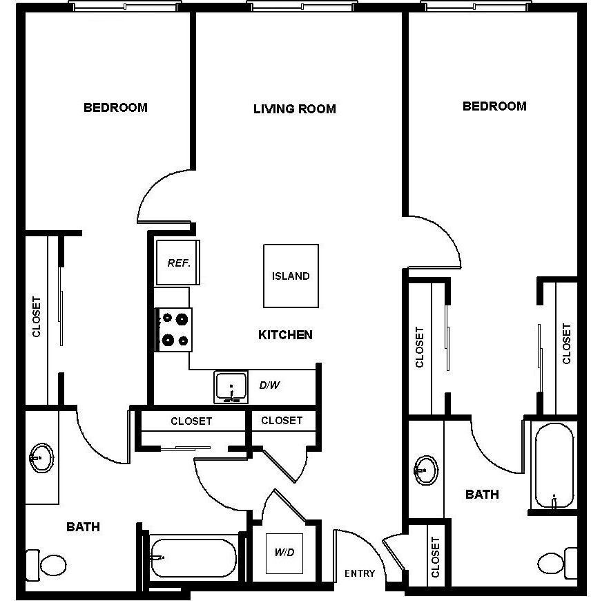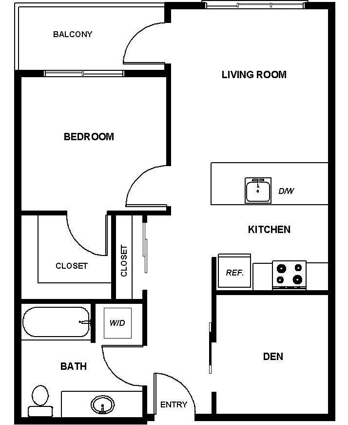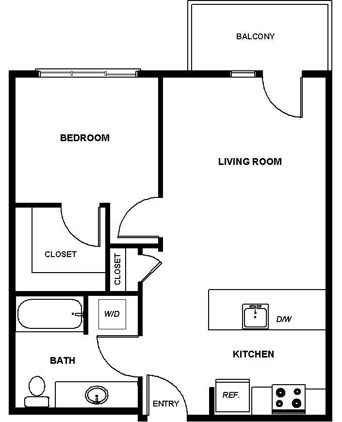 2.1 - Floorplan 2 Apartment Unit: 419Apartment Model: 2.11 Bedroom, 1 Bath, 674 sq ftAvailable NowFloorplan 2.7