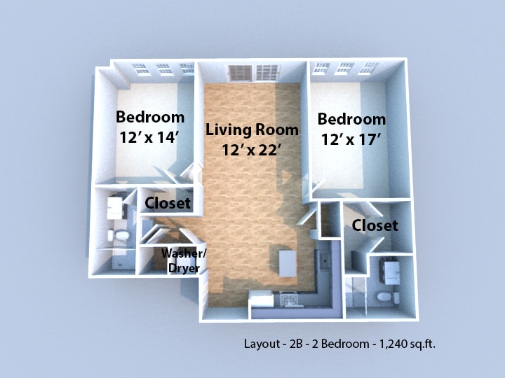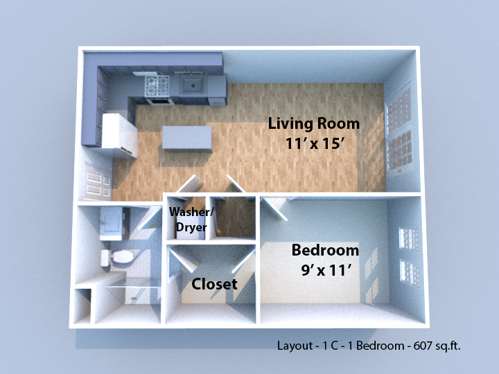Luna Flats - 1-bed/1-bath (1C) - Floorplan 11 Luna Flats - 1-bed/1-bath (1D)