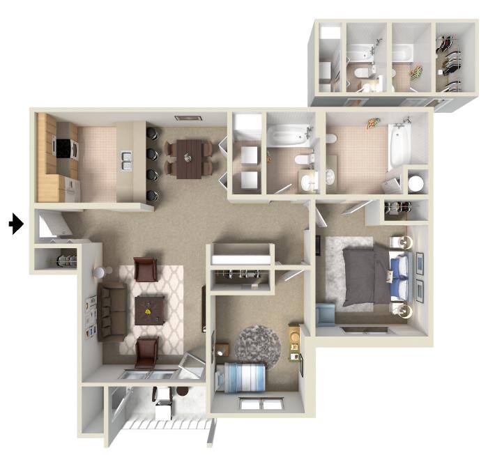 1 Bed, 1 Bath, 935 sq ftAvailable NowModel Gallery