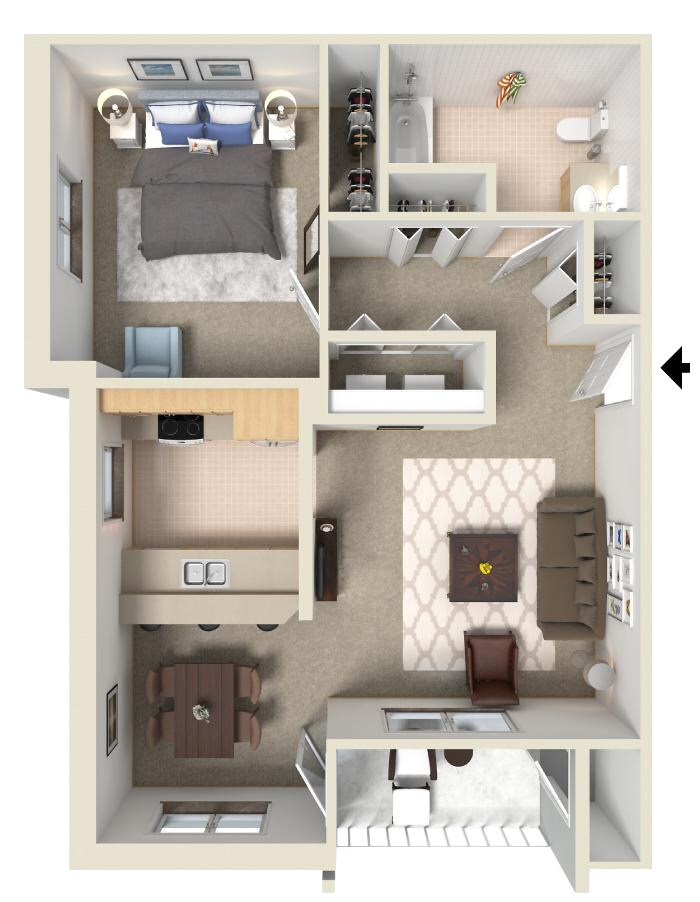1 Bed, 1 Bath, 825 sq ftModel Gallery