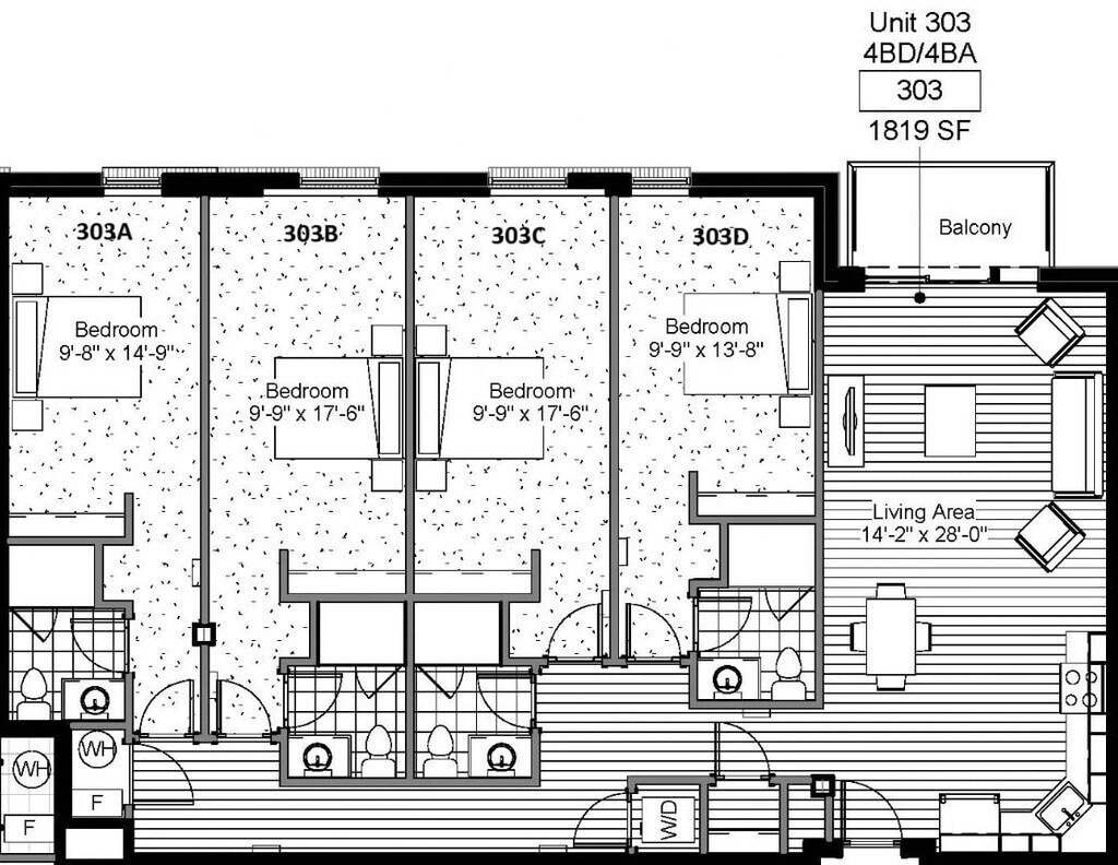 4 Bed 4 Bath - Floorplan 10 Apartment Unit: 201Apartment Model: 4 Bed 4 Bath4 Bedroom, 4 Bath, 1614 sq ftAvailable July 28, 2026Apartment Unit: 301Apartment Model: 4 Bed 4 Bath4 Bedroom, 4 Bath, 1614 sq ftAvailable July 28, 2026Apartment Unit: 203Apartment Model: 4 Bed 4 Bath4 Bedroom, 4 Bath, 1816 sq ftAvailable August 9, 2026Individual Bedroom - 4 Bed 4 Bath