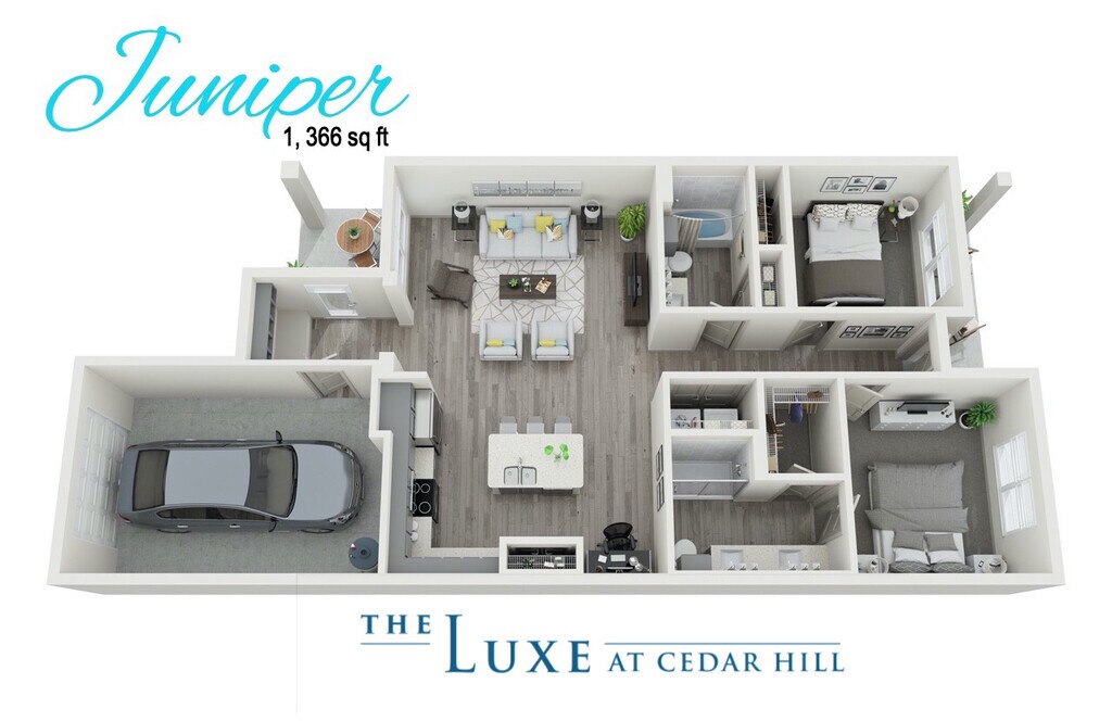 The Luxe at Cedar Hill 55+ Active Adult offers 1 to 2 Bedroom apartments starting from $1,549 and having 653–1,366 sq ft. Here is the current pricing and availability: