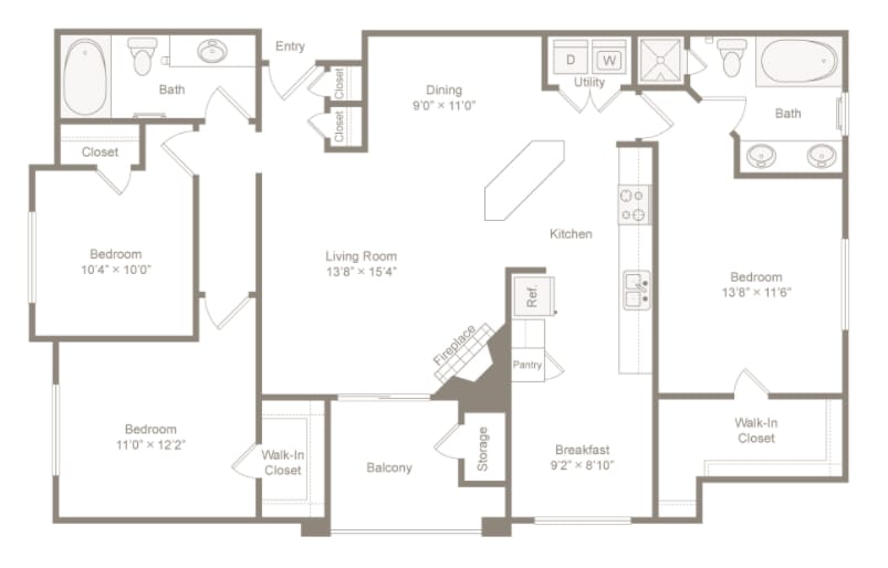 - Spacious closets