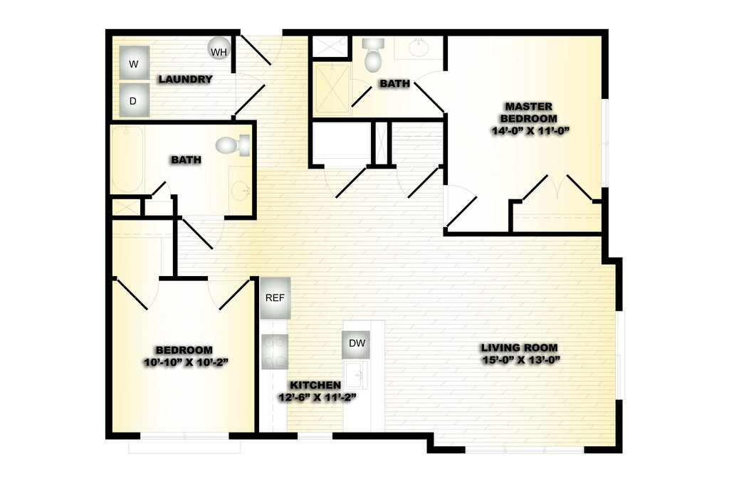 2 Beds, 2 Baths, 1124 sq ftLargest 2 BedroomThis is the largest 2 Bedroom at this PropertyModel Gallery