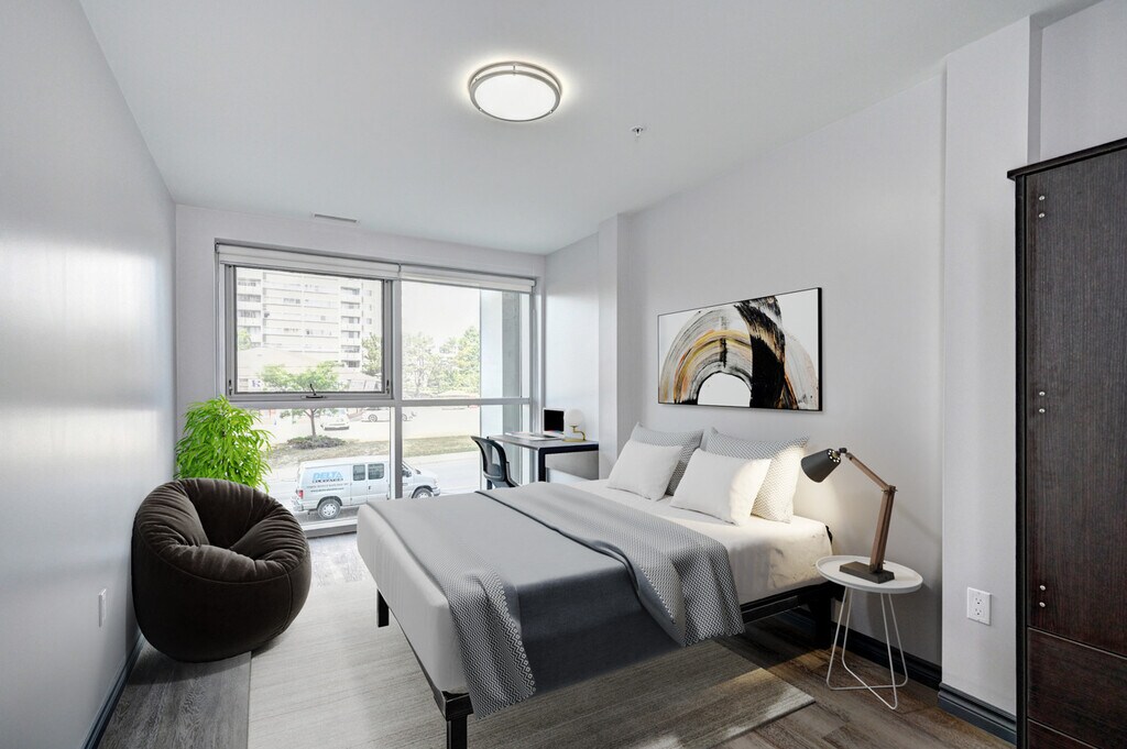 Location: Waterloo, Ontario. Located close to Waterloo University, Wilfrid Laurier, & Conestoga College (Waterloo location) - this location is perfect for all students. The property offers fully furnished bedrooms and free Hi-speed WIFI. Come as a pair, individually, or as a group. Save the travel time to the property and meet us on Facetime, or WhatsApp. Simply click "Book Tour" to meet us online and secure over the phone. Leasing for 2026 opens soon! Our waitlist is now live — secure your spot today! PROMOTION: Receive 2 months of rent FREE! *Some conditions apply, please inquire for more details.* We're ready for YOU! Please check our availability below: 1 Room in a 5 Bedroom - Immediate (12 Months): Starting from $974/Month 2026 Waitlist (8 or 12 Months) - JOIN THE WAITLIST! *Speak with your leasing specialist about Utilities.* TOUR OPTIONS: In-person Virtually (via Facetime or WhatsApp) Top reasons to live at 21 Columbia Street West: Close to University of Waterloo, Laurier & Conestoga College Kitchen with full-size appliances, including dishwasher Laminate floors Air conditioning Large living areas -Bedroom fully furnished with desk and storage High-Speed WIFI included Balcony (included in select suites) Onsite laundry facility The MARQ Residence life programs - regular resident events Utilities: Heat and water included Hydro not included ** Ask about details onsite Covered parking is $135/month How to get the process started: Book an in-person tour on your own schedule by clicking "Book Tour" Meet us at our leasing centre at 345 King Street North OR Online via Facetime or WhatsApp Click "Apply Now", select your room type, fill out the forms, and one of our leasing staff will contact you ASAP Suite images shown represent standard unit finishes, which may differ between units. Suite layout varies.