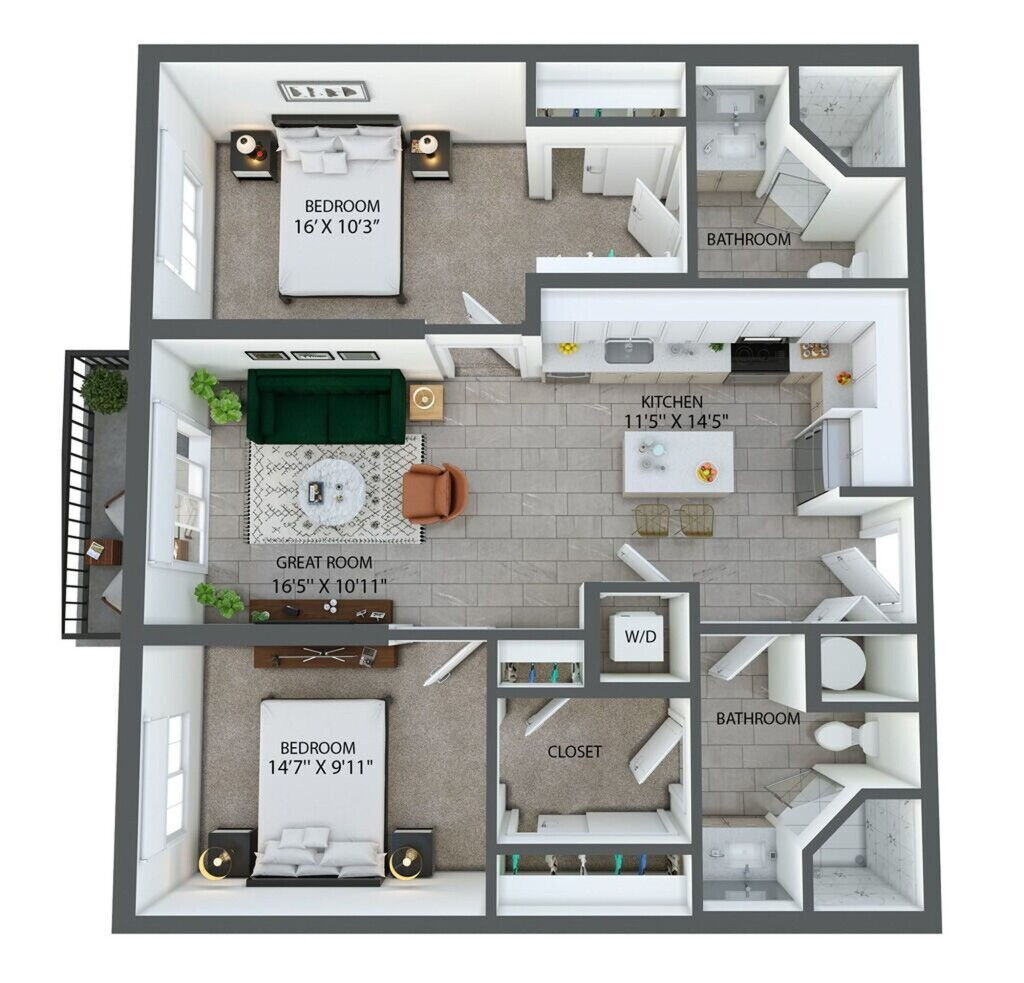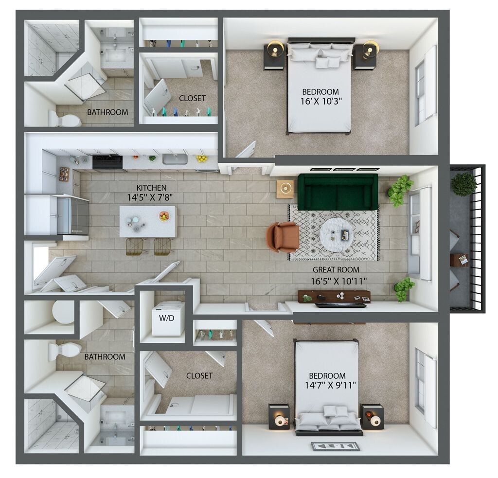 2 Beds, 2 Baths, 971 sq ftAvailable NowModel Gallery