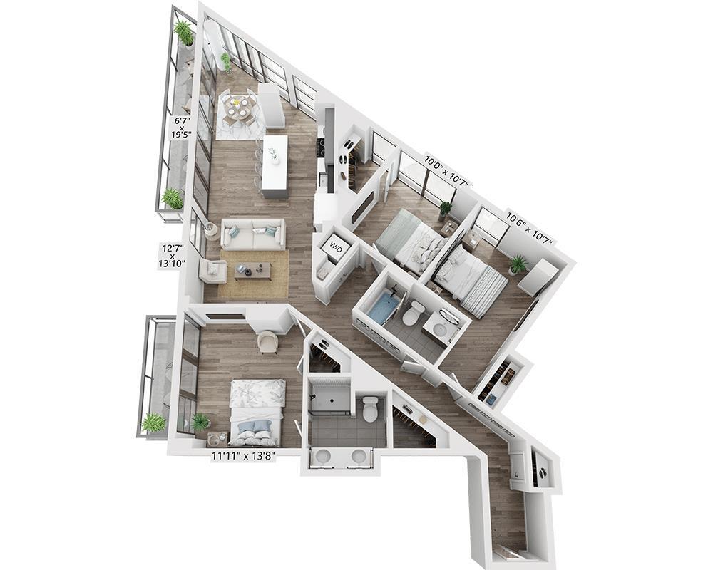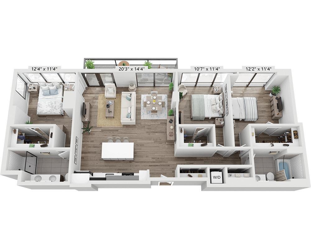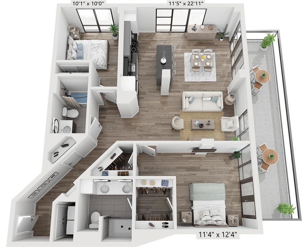 The MO offers 1 to 3 Bedroom apartments starting from $2,098 and having 519–1,407 sq ft. Here is the current pricing and availability:
