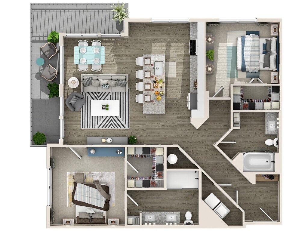 1 Bed, 1 Bath, 843 sq ftModel Gallery