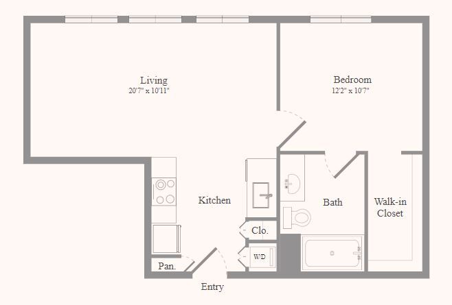 S1 - Floorplan 2 Apartment Unit: 221Apartment Model: S1Studio, 1 Bath, 449 sq ftAvailable November 7, 20251 Bedroom