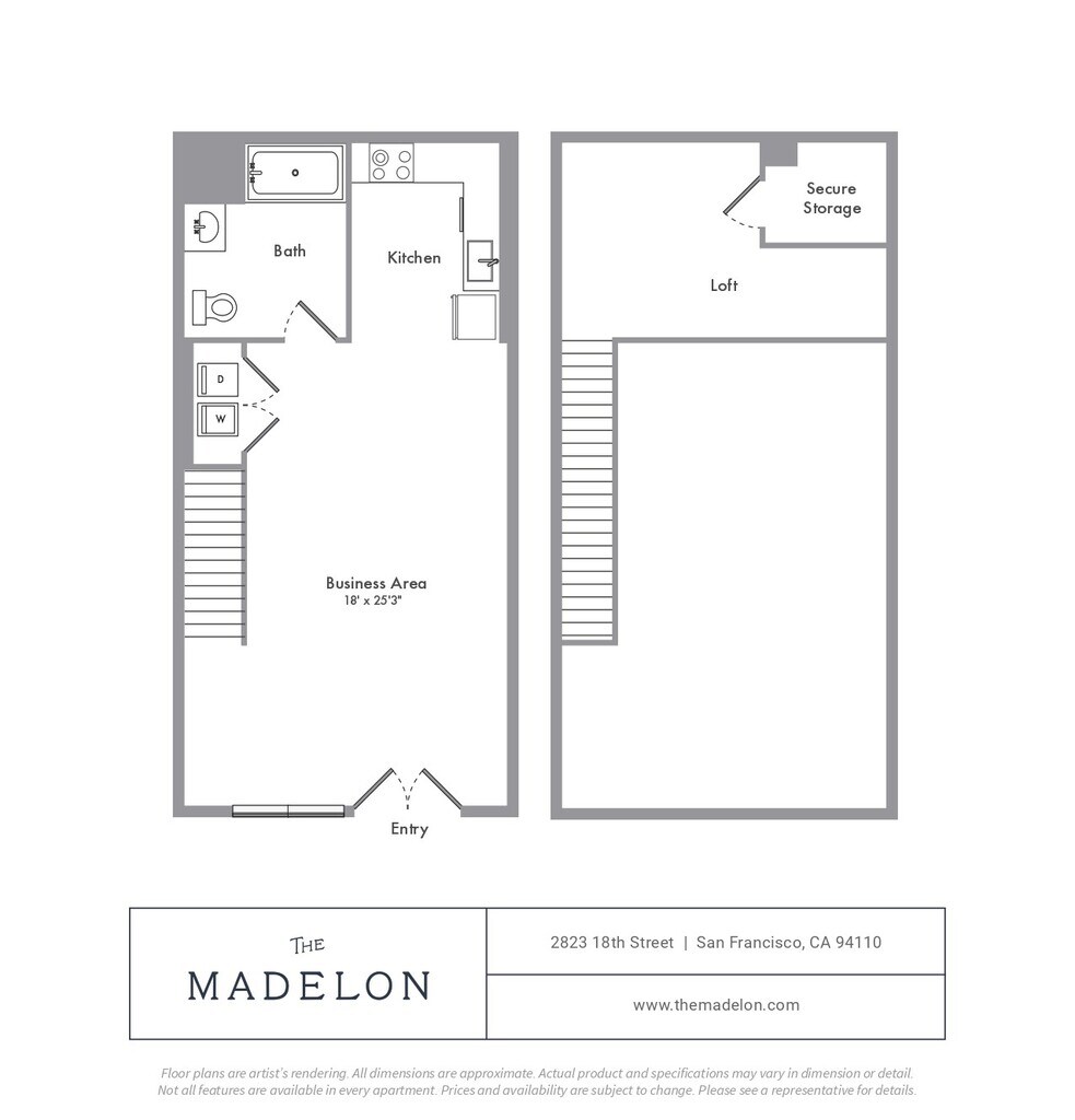 Classic Studio, One Bedroom, and Two Bedroom apartments in the Mission District of San Francisco. Ground floor lofts in which you can make, sell, and live. New housing in a storied 19th century neighborhood. Walk on quiet residential streets to shops, restaurants, bars, gyms, theaters and parks. Bike or BART downtown. Get easily on 101 if you must. Parking available.
