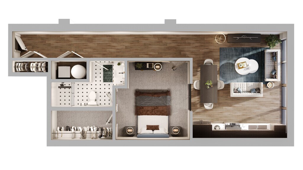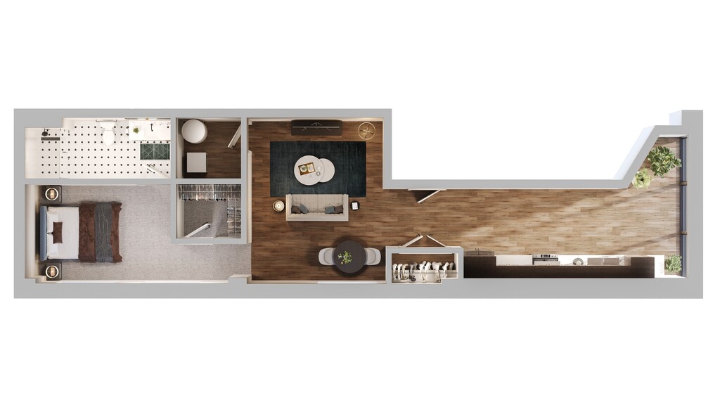 1 Bed, 1 Bath, 587 sq ftModel Gallery