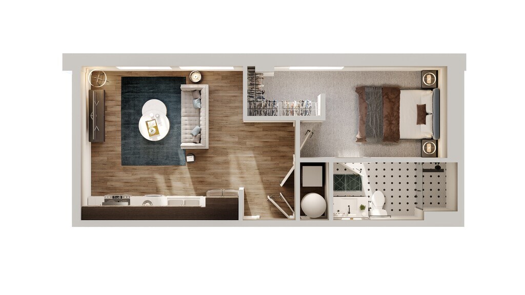 1 Bed, 1 Bath, 594 sq ftModel Gallery