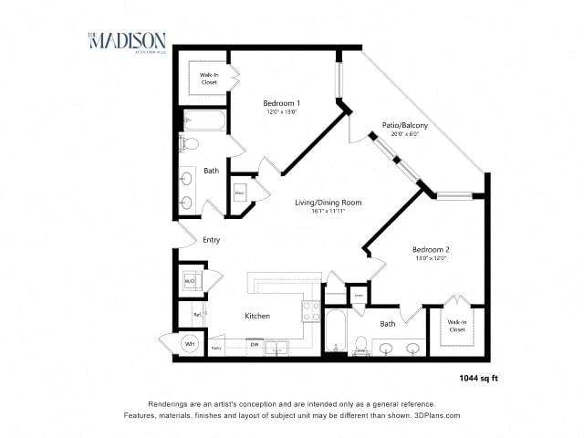Apartment Model: A3From $1,6901 Bedroom, 1 Bath, 754 sq ftAvailable March 1, 2026Floor plans are artist's rendering. All dimensions are approximate. Actual product and specifications may vary in dimension or detail. Not all features are available in every rental home. Prices and availability are subject to change. Base rent is based on monthly frequency. Additional fees may apply, such as but not limited to package delivery, trash, water, amenities, etc. Deposits vary. Please see a representative for details.