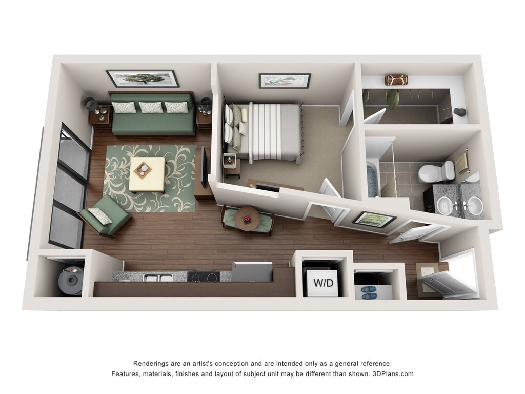 Apartment Model: WADEFrom $1,5421 Bedroom, 1 Bath, 687-732 sq ftAvailable NowFloor plans are artist's rendering. All dimensions are approximate. Actual product and specifications may vary in dimension or detail. Not all features are available in every rental home. Prices and availability are subject to change. Base rent is based on monthly frequency. Additional fees may apply, such as but not limited to package delivery, trash, water, amenities, etc. Deposits vary. Please see a representative for details.