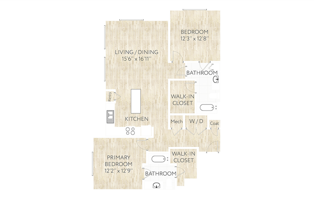 1 Bed, 1 Bath, 836 sq ftAvailable NowLargest 1 BedroomThis is the largest 1 Bedroom at this PropertyModel Gallery
