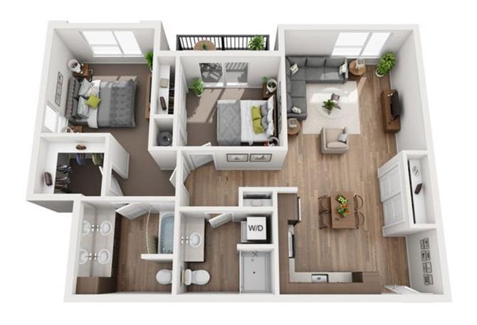 2 Beds, 2 Baths, 1053-1102 sq ftAvailable NowLargest 2 BedroomThis is the largest 2 Bedroom at this PropertyModel Gallery