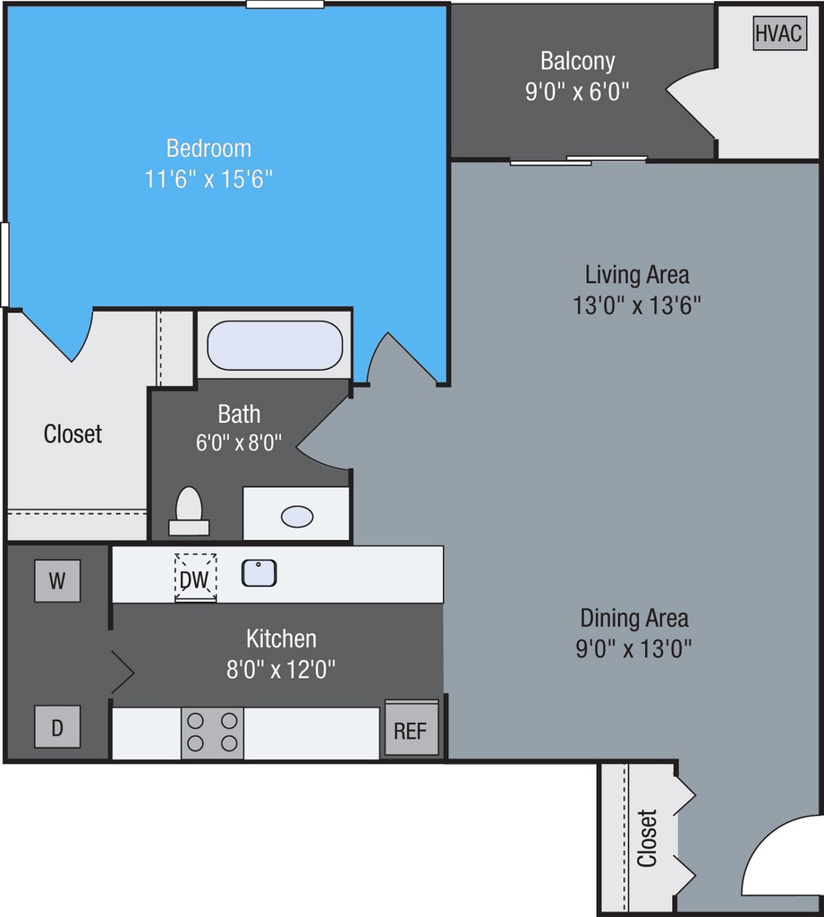 Carlton - 1 Bedroom 1 Bath - Floorplan 1 ![]()